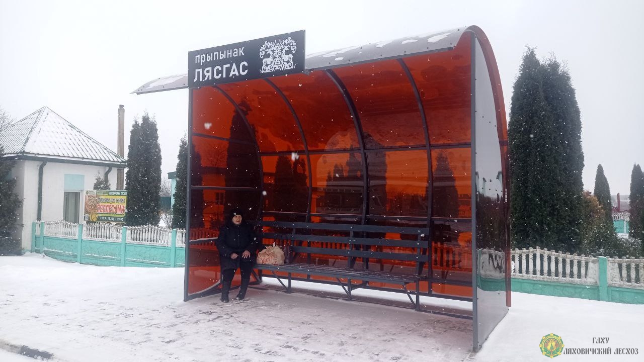ПРЫПЫНАК "ЛЯСГАС" В Год благоустройства остановка городского транспорта возле административного здания Ляховичского лесхоза получила